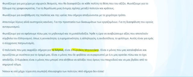 Το εντυπωσιακό είναι ωστόσο το άρθρο που ακολουθεί με τίτλο «12 λόγοι γιατί με τον Κυριάκο», αν και στο κείμενο υπάρχουν έντεκα λόγοι…
