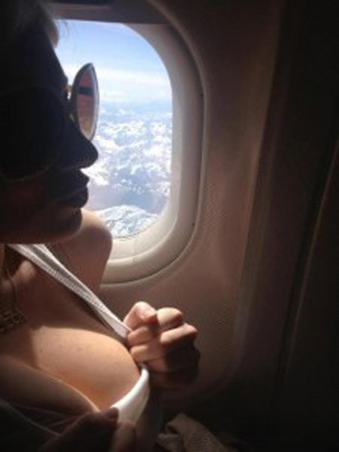 Όπως βλέπετε η Τζούλια Αλεξανδράτου εν ώρα πτήσης δείχνει το στήθος της στο φωτογράφο και ανεβάζει αμέσως τη φωτογραφία της.