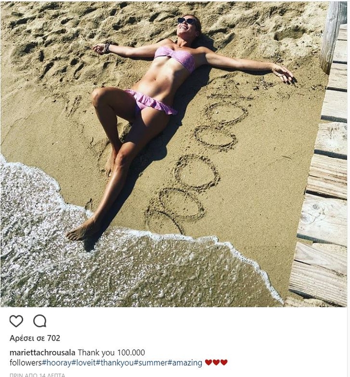 Το μοντέλο και παρουσιάστρια απολαμβάνει τις τελευταίες ημέρες του καλοκαιριού και πριν από λίγη ώρα δημοσίευσε στον προσωπικό της λογαριασμό στο Instagram μια φωτογραφία με μικροσκοπικό ροζ μπικίνι για να ευχαριστήσει τους followers της που έφτασαν τις 100.000.
