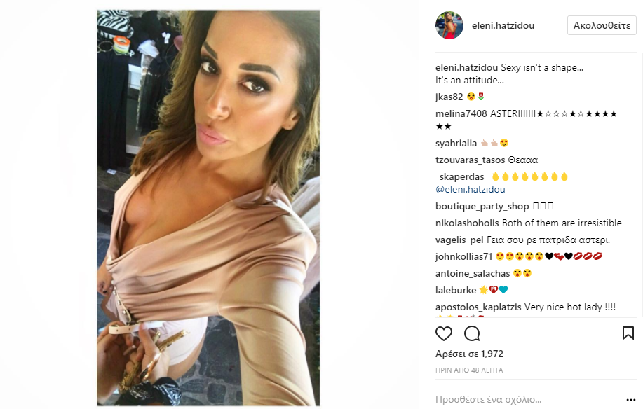 “Σέξι δεν είναι ένα σώμα. Είναι μια συμπεριφορά” έγραψε ως λεζάντα η Ελένη Χατζίδου.