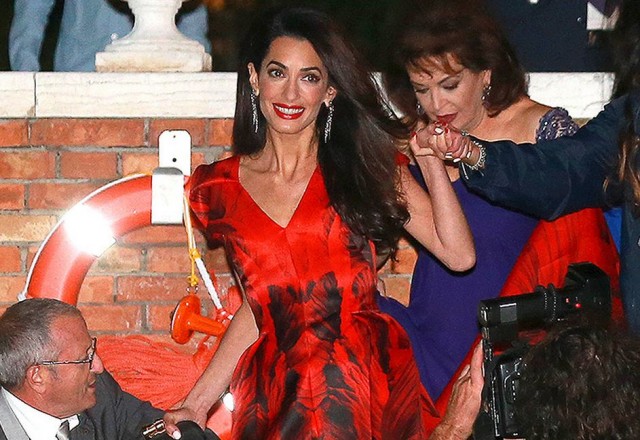 Εκθαμβωτική φορώντας ένα κόκκινο φόρεμα με μαύρες αποχρώσεις συναντήθηκε με την αδελφή της , τη μητέρα της και 14 φίλες της οι οποίες της ετοίμασαν ένα αξέχαστο πάρτι στο ξενοδοχείο Aman Canal Grand Venice.
