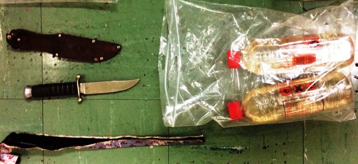 – δύο πλαστικά μπουκάλια με βενζίνη,