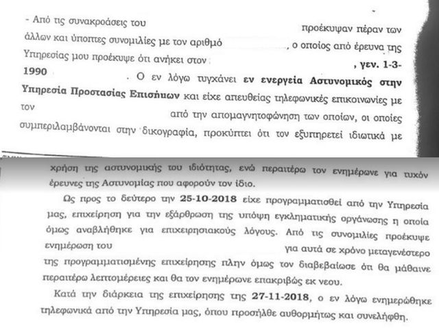 Ο αστυνομικός που υπηρετεί μάλιστα σε θέση φύλαξης VIP προσώπου φαίνεται ότι ήταν ο άνθρωπος που είχε ο κατηγορούμενος Ριχάρδος για να τον ενημερώνει για τις κινήσεις της Αστυνομίας.