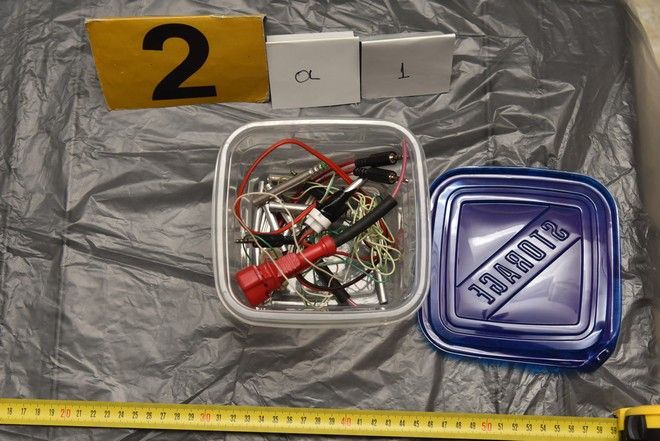 (14) κοινοί πυροκροτητές, (2) ηλεκτρικοί πυροκροτητές, (2) πυροκροτητές Nonel, (1) κοινός πυροκροτητής που έχει μετατραπεί σε ηλεκτρικό, πλήθος φυσιγγίων πολεμικού τυφεκίου ( Kalashnikov).