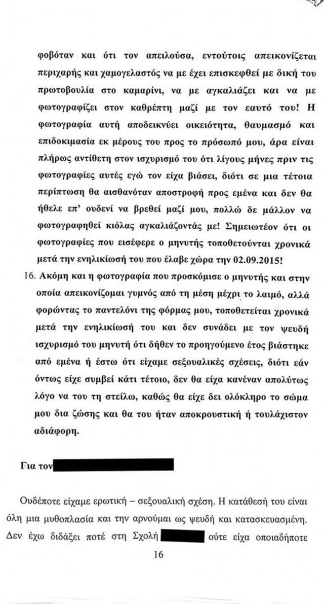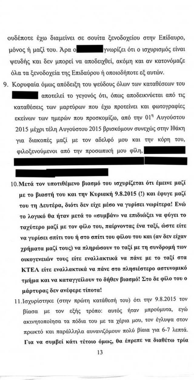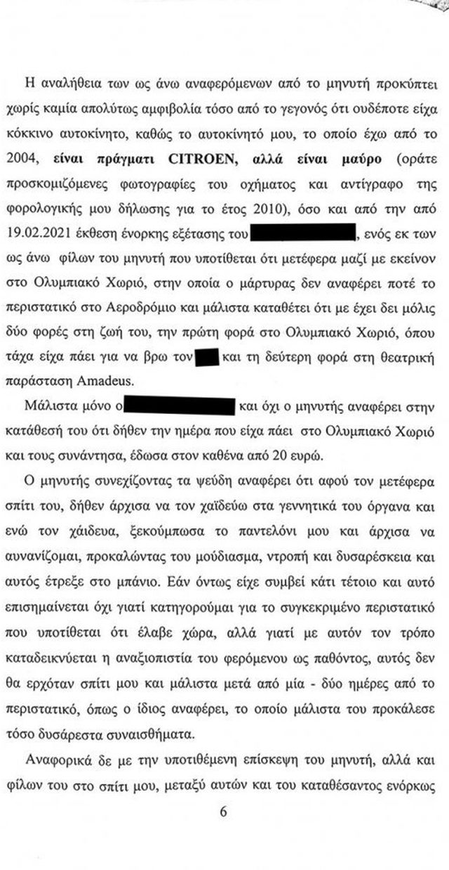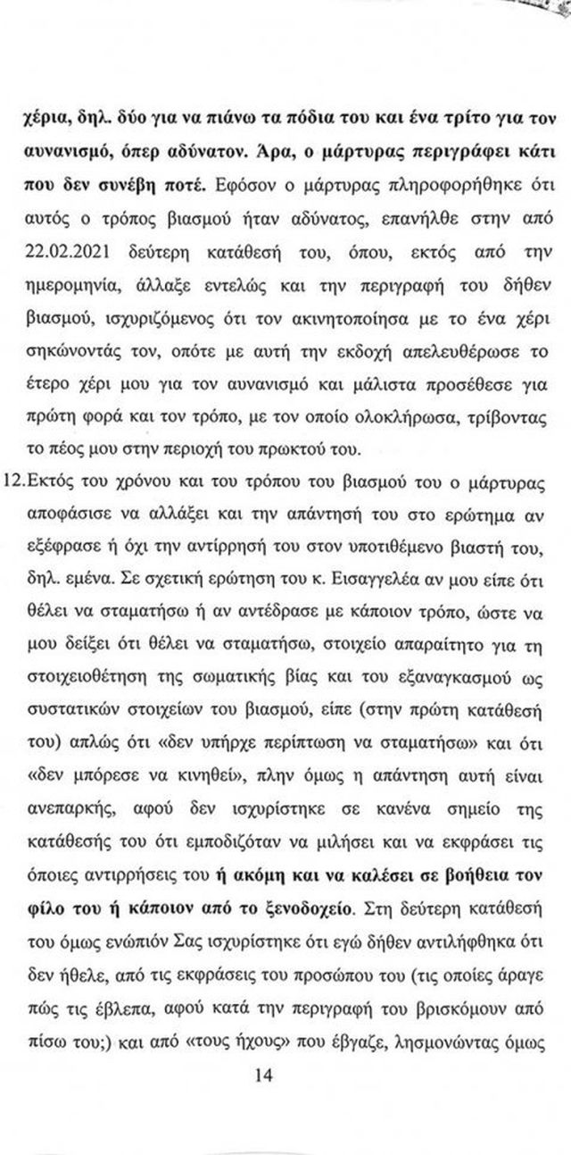 Για την μάρτυρα μάλιστα αναφέρει πως «πρόκειται για μια κοπέλα που είχε εμμονή με το πρόσωπο μου» της οποίας την κατάθεση χαρακτηρίζει μυθοπλασία.