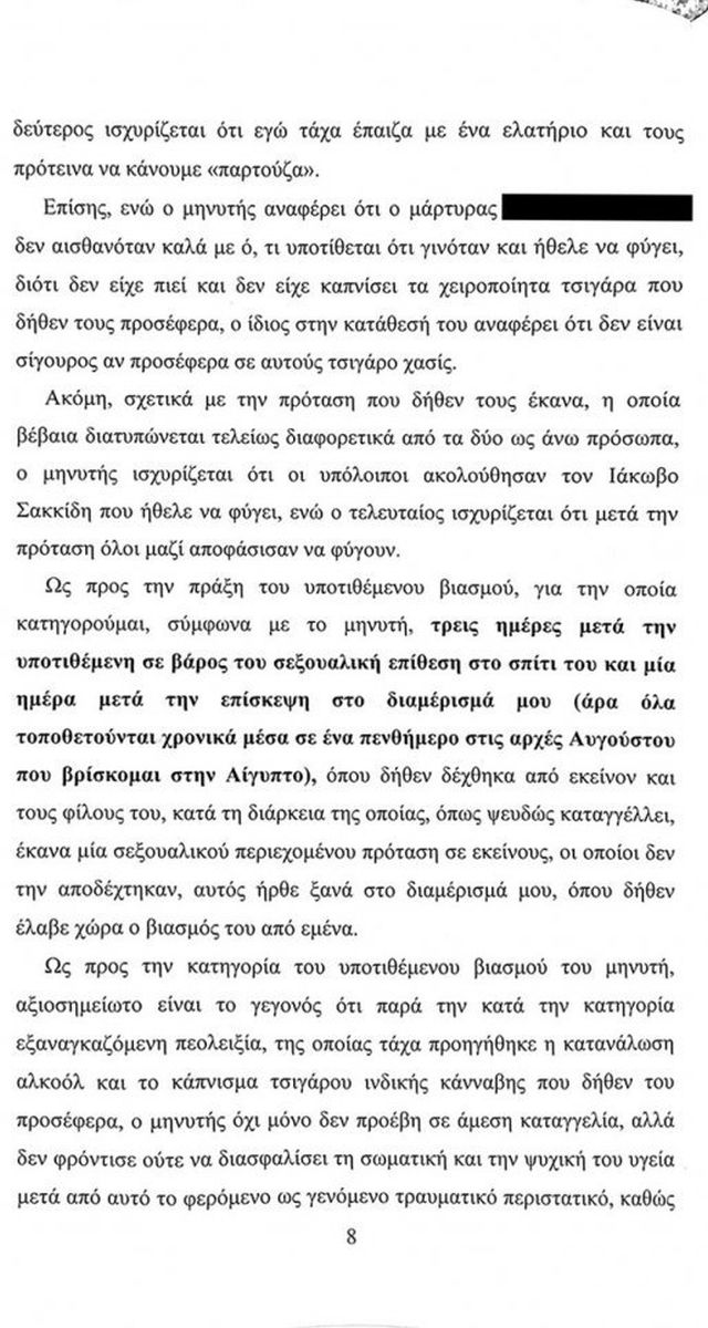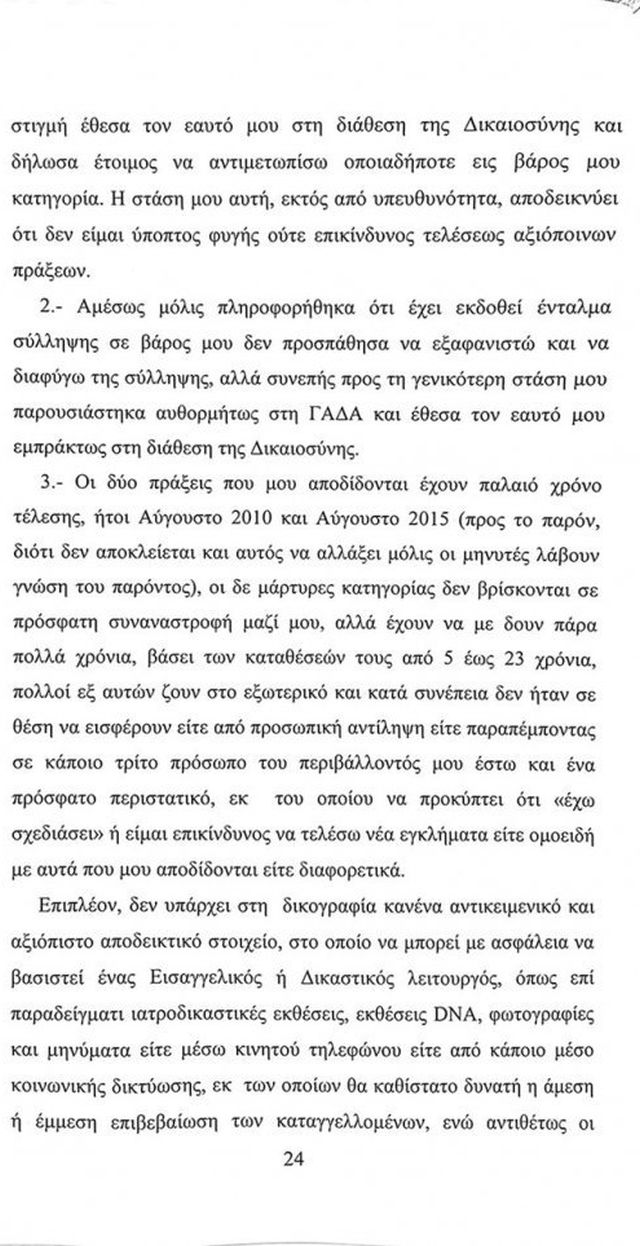 Επίσης αναφέρεται διεξοδικά και στην πρώτη μήνυση που κατατέθηκε σε βάρος του για παραγεγραμμένο αδίκημα αλλά και την γυναίκα που κατέθεσε λίγες ώρες πριν εκδοθεί το ένταλμα σε βάρος του.