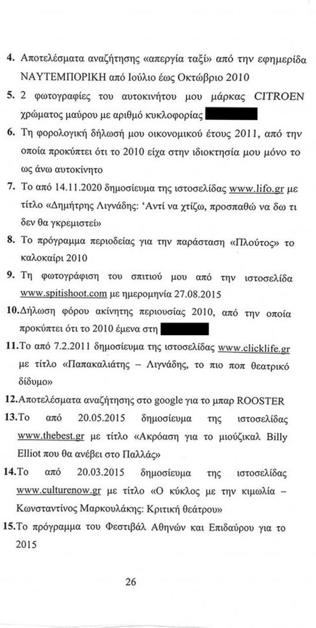 Στο υπόμνημα ο κ. Λιγνάδης παραθέτει λεπτομερώς όλα τα στοιχεία που κατά την άποψη του, καταρρίπτουν τους ισχυρισμούς των δύο καταγγελλόντων για τις πράξεις που του αποδίδουν.