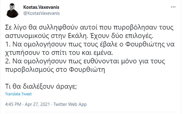 Ο Κώστας Βαξεβάνης έγραψε σε ανάρτησή του στο Twitter:
