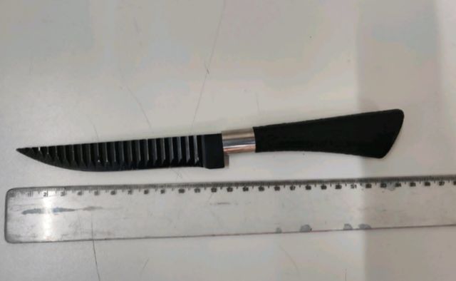 Κατά την έρευνα που έγινε στο σακίδιο που είχε πάνω του, εντοπίστηκε το μαχαίρι που φαίνεται στη φωτογραφία.