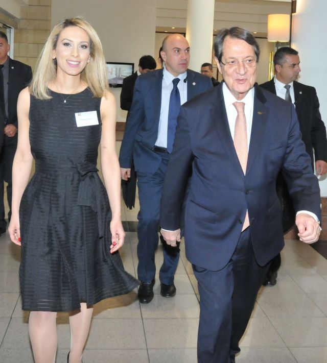 Η Πέγκυ Λιβανίου καλωσορίζει και προλογίζει τον Πρόεδρο της Κυπριακής Δημοκρατίας Νίκο Αναστασιάδη στο ετήσιο Μεσογειακό Συνέδριο Φυσικού Αερίου που διοργανώνει κάθε χρόνο στο ξενοδοχείο Χίλτον στη Λευκωσία της Κύπρου.