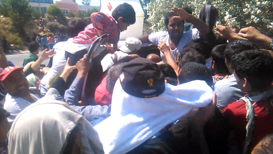 O ιδιοκτήτης του caternig Γιώργος Σαξιώνης μόλις είδε να του καταστρέφουν την περιουσία άρχισε να διώχνει τους μετανάστες που είχαν εν τω μεταξύ κάνει κατάληψη στο βαν του.Στη συνέχεια βλέποντας ότι κινδύνευε και η ίδια του η σωματική ακεραιότητα έβαλε μπρος το αυτοκίνητο και ξεκίνησε με σπασμένες πόρτες να φύγει ενώ ακόμα μέσα ήταν μετανάστες και βούταγαν τις μερίδες φαγητών.
