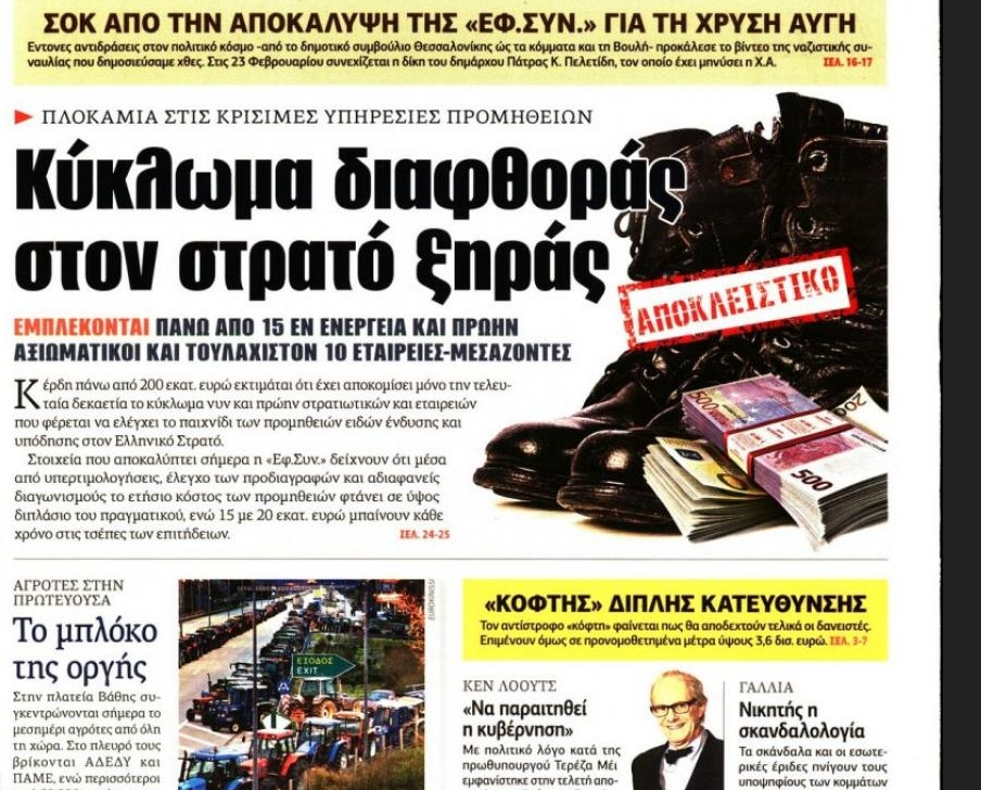 Διαβάστε σχετικά για Διαφθορά, Ελληνικός Στρατός, Εφημερίδα των Συντακτών,