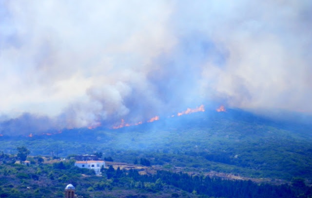 Μέχρι στιγμής, έχει κάψει την περιοχή Αρωνιαδίκων -Πιτσινάδες και τώρα καίει προς Αραιούς και Μυλοπόταμο. Στη μάχη με τη φωτιά επιχειρούν 37 πυροσβέστες με 26 οχήματα, 22 άτομα πεζοπόρου τμήματος, ενώ κατά τη διάρκεια της ημέρας επιχείρησαν από αέρος τρία πυροσβεστικά αεροσκάφη «Πετζετέλ» και δυο ελικόπτερα.