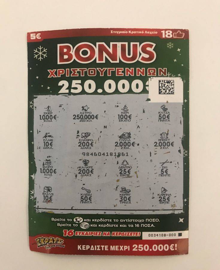 Τα χρόνια πέρασαν και ο υπερτυχερός επέστρεψε στην Ελλάδα και συγκεκριμένα στην Κρήτη. Δεν λησμόνησε, όμως, το ιδιαίτερο έθιμο και, έτσι, κι αυτά τα Χριστούγεννα αγόρασε για τη γυναίκα του λαχνούς ΣΚΡΑΤΣ. Ανάμεσά τους ήταν το «χρυσό» «Bonus Χριστουγέννων» που τους χάρισε 250.000 ευρώ!