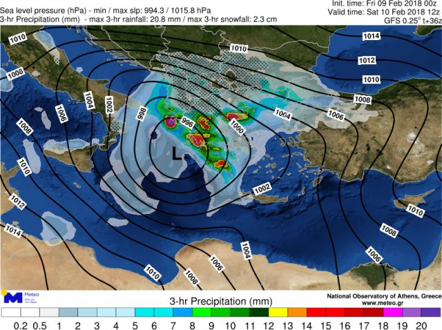 Η θέση της “Ιοκάστης” και των βροχοπτώσεων το μεσημέρι και το απόγευμα του Σαββάτου 10/02 δίνονται στον παρακάτω χάρτη: