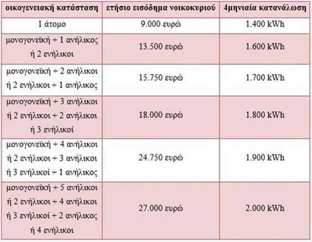 -Ικανοποιούνται τα εισοδηματικά και περιουσιακά κριτήρια υπαγωγής στο νέο Κοινωνικό Οικιακό Τιμολόγιο (ΚΟΤ).