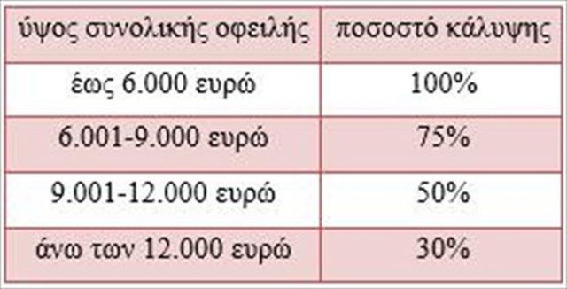Το ύψος του εφάπαξ βοηθήματος καθορίζεται ανάλογα με το ύψος της οφειλής: