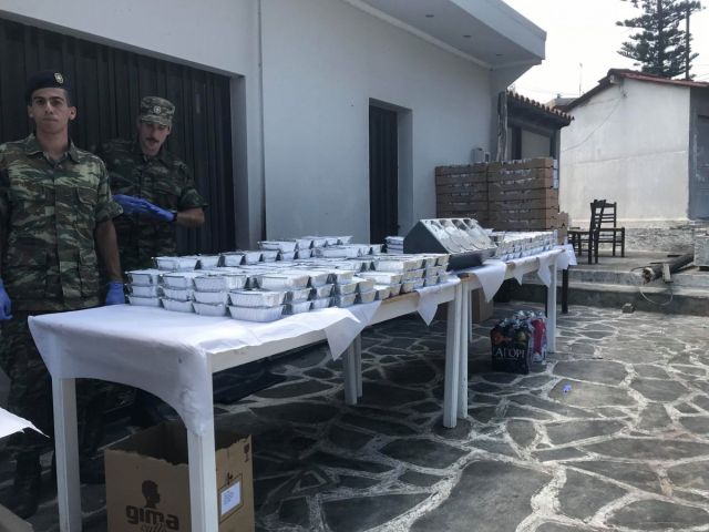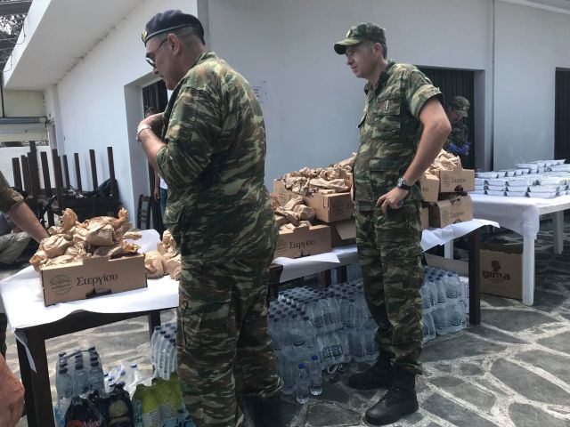 Τρόφιμα σε πυρόπληκτους της Ανατολικής Αττικής, διανέμει ο στρατός.