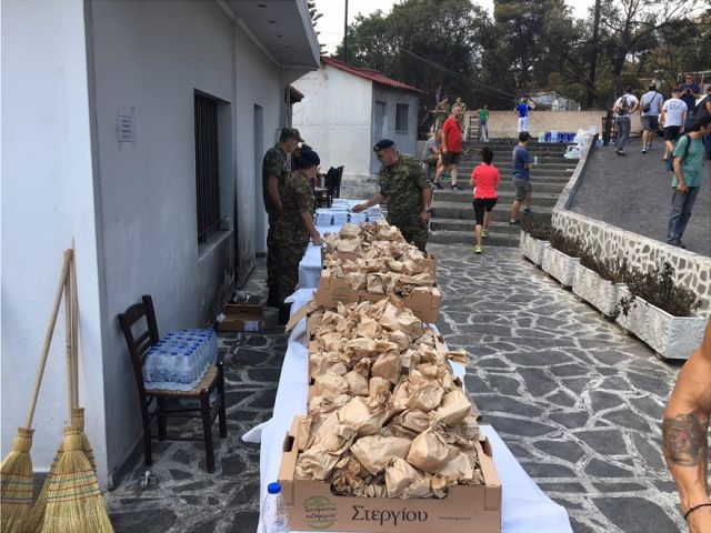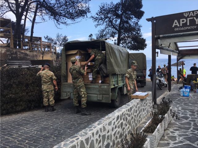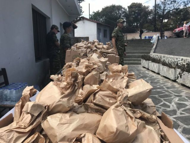 Ο στρατός μοιράζει τρόφιμα σε πυρόπληκτους στο Μάτι (φωτο)