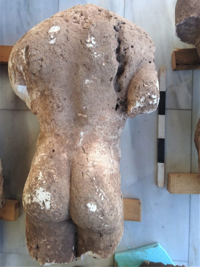 Κατά τη διάρκεια της χθεσινής ανασκαφικής έρευνας (2/11/18) εντοπίσθηκε ένας ακόμη κούρος σε φυσικό μέγεθος (σωζ. ύψους 0.95μ.) που σώζεται από το ύψος του λαιμού ως τους μηρούς, απεικονίζει γυμνό νέο με ελαφρά προτεταμένο το αριστερό σκέλος και διατηρείται σε καλή κατάσταση.