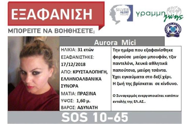 Τα ίχνη της 31χρονης Aurora Mici χάθηκαν τη Δευτέρα 17 Δεκεμβρίου 2018 στην περιοχή της Κρυσταλλοπηγής Φλώρινας.