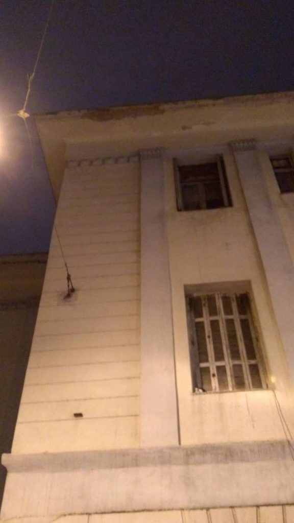 Εδώ και περίπου 15 ημέρες είχε τοποθετηθεί κόκκινη κορδέλα και κάποια ιδιόχειρα σημειώματα με σκοπό να προειδοποιήσουν όσους κινούνταν πεζή, για πιθανή αποκόλληση «σοβάδων». Όμως, το κακό έγινε το βράδυ της Πέμπτης. Ένα κομμάτι από τη μαρκίζα αποκολλήθηκε και έπεσε, από μεγάλο ύψος, πάνω στον 20χρονο.