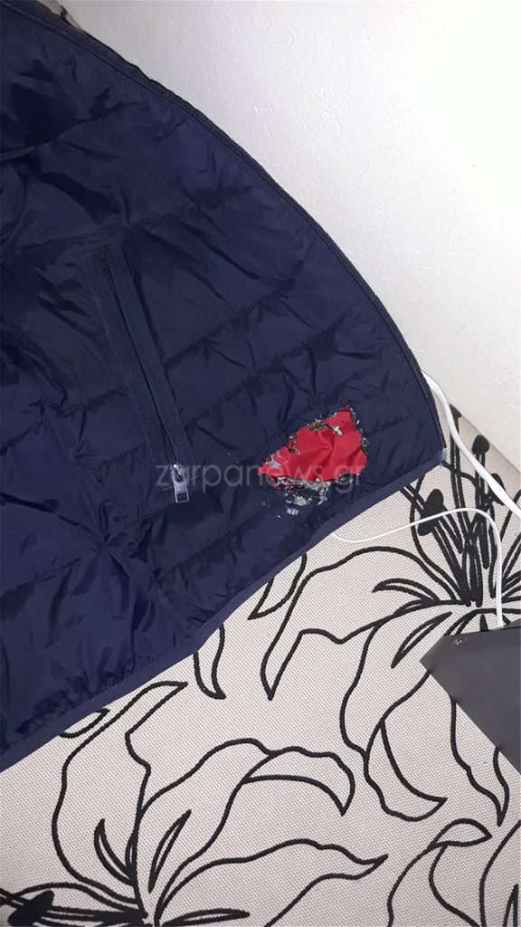 Ευτυχώς ο νεαρός δεν τραυματίστηκε και οι ζημιές περιορίστηκαν στο κινητό και το γιλέκο όπως φαίνεται στις φωτογραφίες: