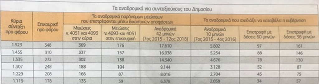 Σύμφωνα με τον Ελεύθερο Τύπο, το «μεγάλο πακέτο» που ήδη κερδίζουν οι συνταξιούχοι στα δικαστήρια με τελεσίδικες αποφάσεις έχει αναδρομικά ως 42 μήνες με ποσά από 2.310 ευρώ ως και 22.457 ευρώ για συντάξεις από 500 ως 3.500 ευρώ.
