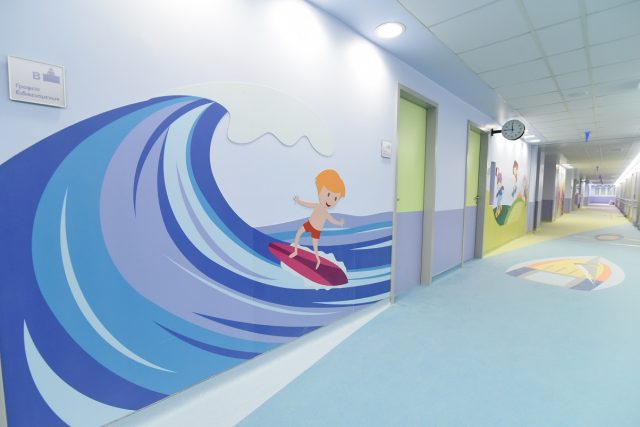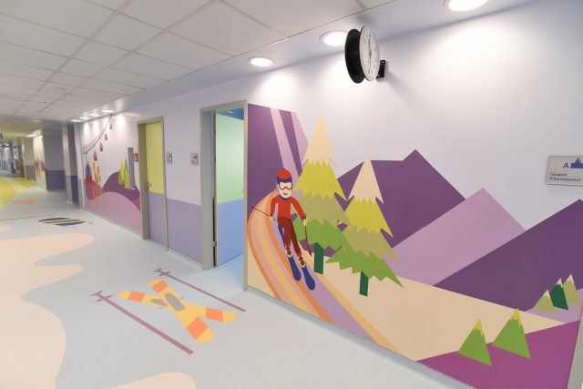 Επίσης, πραγματοποιούνται εκτενείς χρωματικές και διακοσμητικές παρεμβάσεις, οι οποίες δημιουργούν πλέον ένα ευχάριστο περιβάλλον νοσηλείας για τους μικρούς ασθενείς.