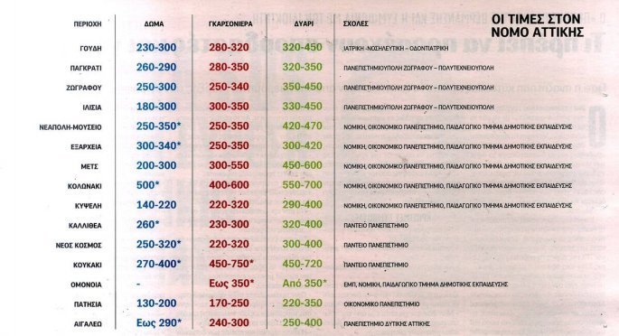 Τι ενοίκια θα κληθούν να πληρώσουν φέτος οι φοιτητές (πίνακας)
