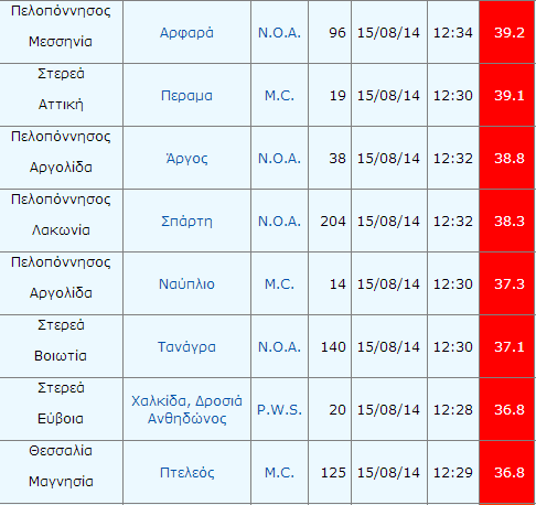 Ήδη οι θερμοκρασίες που καταγράφονται από το δίκτθο τβν σταθμών του metar.gr καταγράφουν θερμοκρασίες που δείχνουν ότι τους 42 βαθμούς θα τους φτάσουν αρκετές πόλεις.