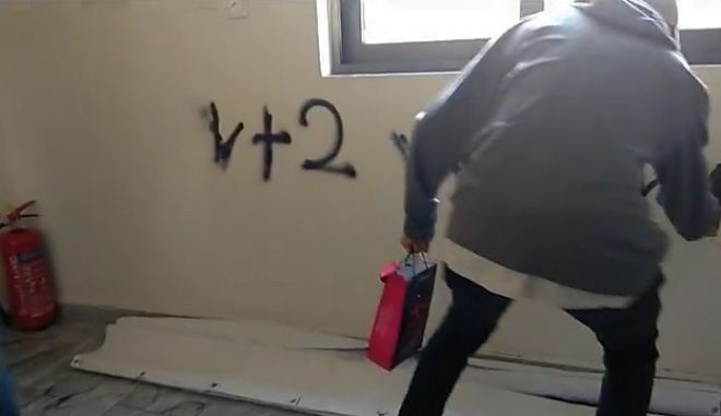 Σε βίντεο που ανήρτησαν σε γνωστή ιστοσελίδα του αντιεξουσιαστικού χώρου, τα άτομα φαίνονται να εισβάλλουν στο εσωτερικό του κτιρίου, να πετούν μπογιές και να γράφουν το σύνθημα στους τοίχους «ν+2 να ‘ναι οι ώρες σας».