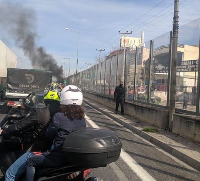 Στις φλόγες τυλίχθηκε Ι.Χ. αυτοκίνητο στον Κηφισό, 500 μέτρα πριν την έξοδο Μεταμόρφωσης στο ρεύμα προς Λαμία.