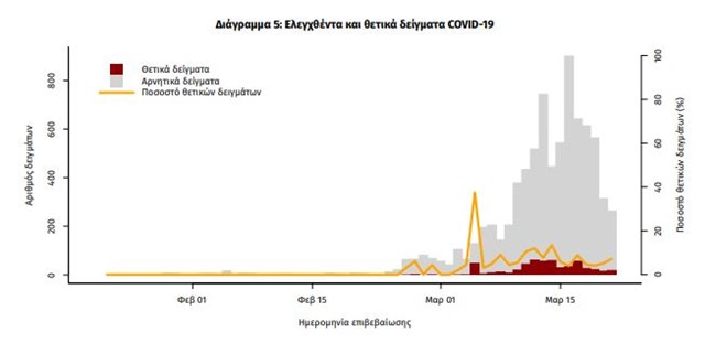 Τέος, αναφορικά με τα δείγματα που έχουν ελεγχθεί εργαστηριακά: Από την 1η Ιανουαρίου 2020 μέχρι σήμερα, στα εργαστήρια που διενεργούν εξετάσεις για τον νέο κορωνοϊό και που δηλώνουν συστηματικά στον ΕΟΔΥ το σύνολο των δειγμάτων που ελέγχουν (θετικά και αρνητικά), έχουν συνολικά ελεγχθεί 8006 κλινικά δείγματα, εκ των οποίων τα 557 (7.0%) θετικά στον κορονοϊό.