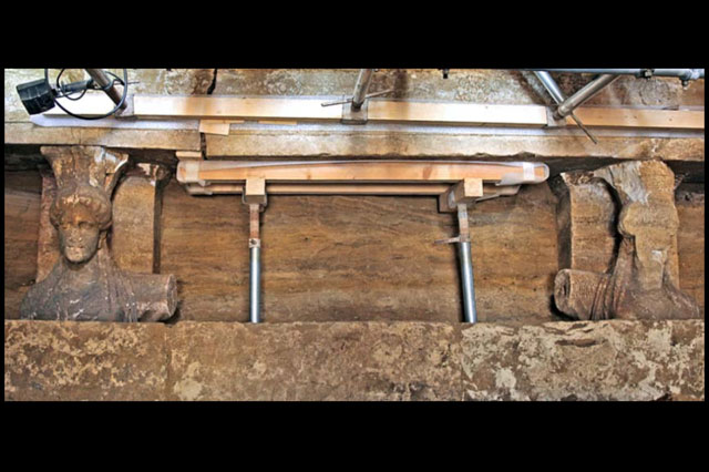 Συνεχίστηκαν τα έργα υποστήλωσης και αντιστήριξης των δομικών στοιχείων στο εσωτερικό του μνημείου, προκειμένου να εξελιχθούν, με ασφαλή τρόπο οι ανασκαφικές εργασίες.