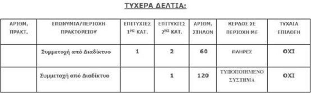 Ο πρώτος online νικητής, που αναδείχθηκε στην κλήρωση της 5ης Ιανουαρίου, κέρδισε 1,6 εκατ. ευρώ με ένα δελτίο που περιείχε 9 στήλες και κόστισε 4,5 ευρώ.
