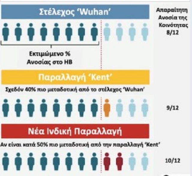 »Είναι σημαντικό να μην επικρατήσει το ινδικό στέλεχος, γιατί θα χρειαστεί να εμβολιαστούν περισσότεροι, και (συνυπολογίζοντας αυτούς που έχουν ανοσία λόγω πρότερης λοίμωξης από τον ιό) το ποσοστό που θα χρειαστεί αντιστοιχεί στο 83.3% του πληθυσμού (10/12).