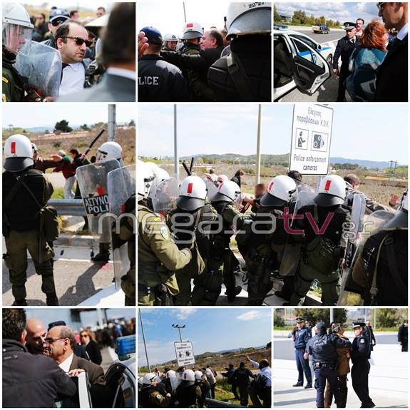 Μέχρι που έφτασαν έξι κλούβες των ΜΑΤ από την Αθήνα και δυναμίτισαν το κλίμα. Οι κάτοικοι είχαν αποφασίσει να κλείσουν την εθνική οδό στο ρεύμα από Κόρινθο προς Αθήνα μόνο για πέντε λεπτά, συμβολικά. Τότε, τα ΜΑΤ επιτέθηκαν κατά των πολιτών με απίστευτη αγριότητα και ακολούθησε πανδαιμόνιο μιάμισης ώρας.