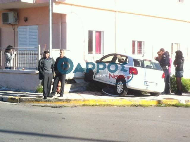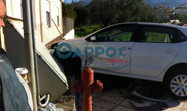 Ένα “τρελό Ι.Χ.” καρφώθηκε -στην κυριολεξία- σε σπίτι στην Καλαμάτα εξαιτίας παραβίασης του κόκκινου φαναριού.