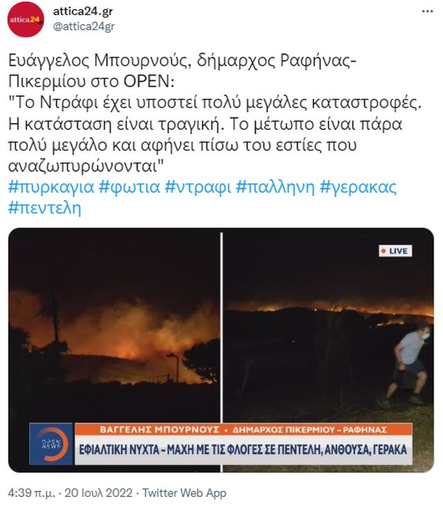 Σημείωσε ότι η φωτιά μαίνεται ανεξέλεγκτη και η εικόνα δεν είναι καλή.