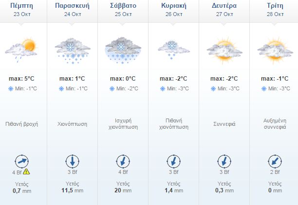 Δείτε ενδεικτικά τους πίνακες με το πως θα διαμορφωθεί ο καιρός στην Αθήνα, την Θεσσαλονίκη και τον Παρνασσό.