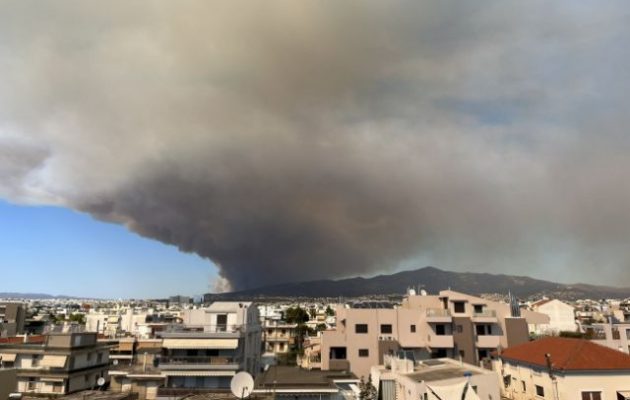 Οι καπνοί φαίνεται να έχουν φτάσει μέχρι και το κέντρο της Αθήνας, οι οποίοι έχουν «πνίξει» την πρωτεύουσα ενώ έκρυψαν τον ήλιο.
