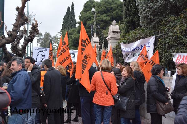 Επεισοδιακή ήταν η συγκέντρωση που πραγματοποίησαν νωρίς το πρωί στο υπουργείο Διοικητικής Μεταρρύθμισης καθηγητές, σχολικοί φύλακες και καθαρίστριες του υπουργείου Οικονομικών που διαμαρτύρονται για τη διαθεσιμότητα και τις απολύσεις.