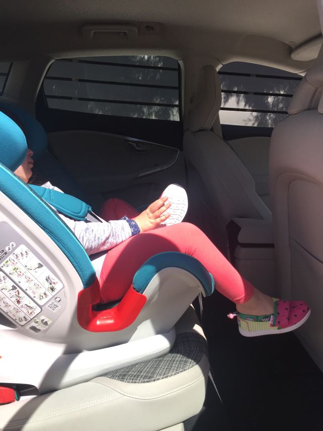 Υποδοχές παιδικού καθίσματος ασφαλείας ISOFIX έχει και στις δυο πίσω εξωτερικές θέσεις το Volvo V40 Cross Country. Εμείς βάλαμε επάνω το παιδικό κάθισμα Britax Romer Advansafix III Sict.