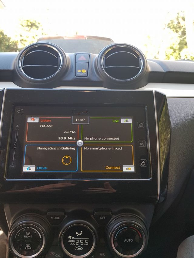 Αν έχετε ξεχάσει να φορτίσετε το κινητό σας, το Swift έχει τον τρόπο να γεμίσει την μπαταρία του αφού διαθέτει ρευματοδότες κάτω ακριβώς από την οθόνη πλοήγησης.