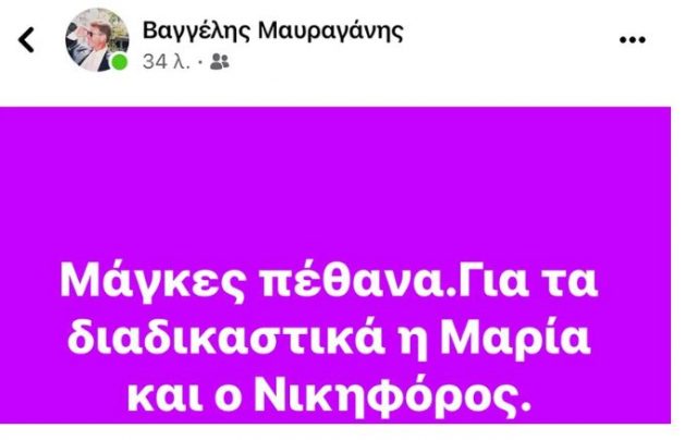 «Μάγκες πέθανα. Για τα διαδικαστικά η Μαρία και ο Νικηφόρος».