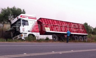 Νταλίκα έπεσε σε χαντάκι στην Τερψιθέα (εικόνες)