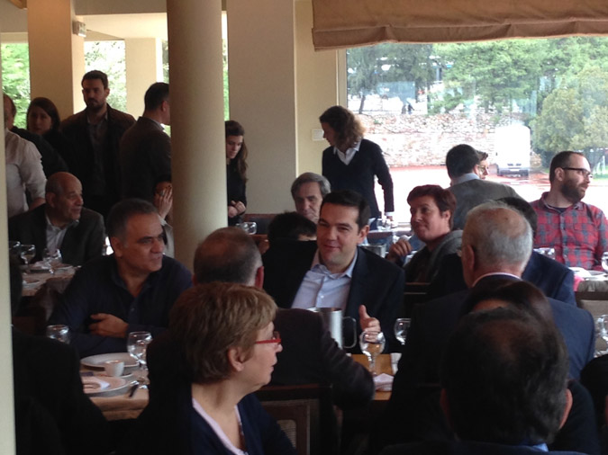 Ο κ. Τσίπρας συνέφαγε με τους δημοσιογράφους σε εστιατόριο στο κέντρο της Αθήνας και απάντησε σιβυλλικά στις ερωτήσεις τους .