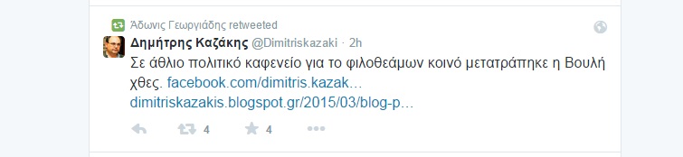 Για να δέσει εντελώς η κομπόστα, ο Άδωνις Γεωργιάδης έκανε retweet και στον Δημήτρη Καζάκη:
