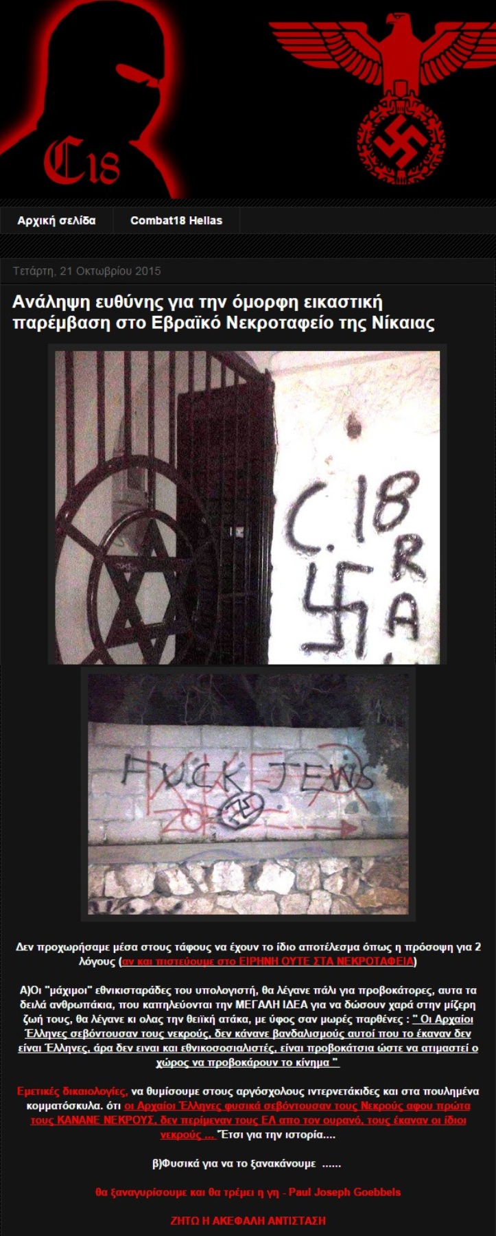 Η ανάληψη ευθύνης έχει αναρτηθεί στο ιστολόγιο combat18hellas.blogspot.gr